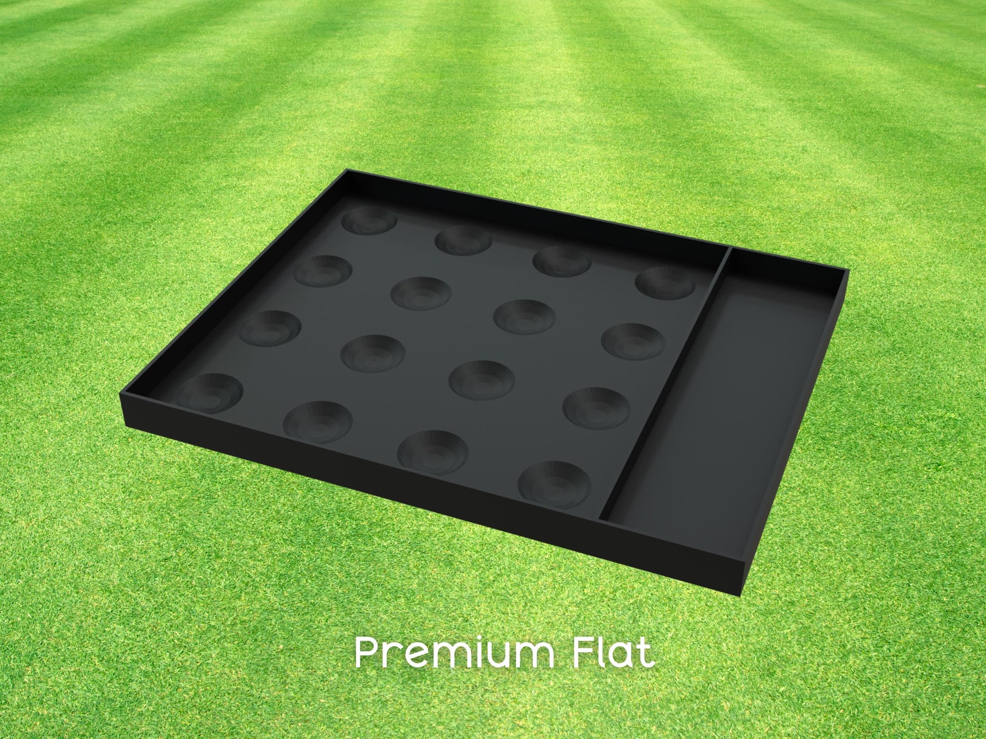 Whether you want a clean ball-only display (Classic), a space for tees (Premium with Tee Holes), or a multi-purpose flat section (Premium Flat Tray), every version brings functional design with a modern look inspired by pro setups.